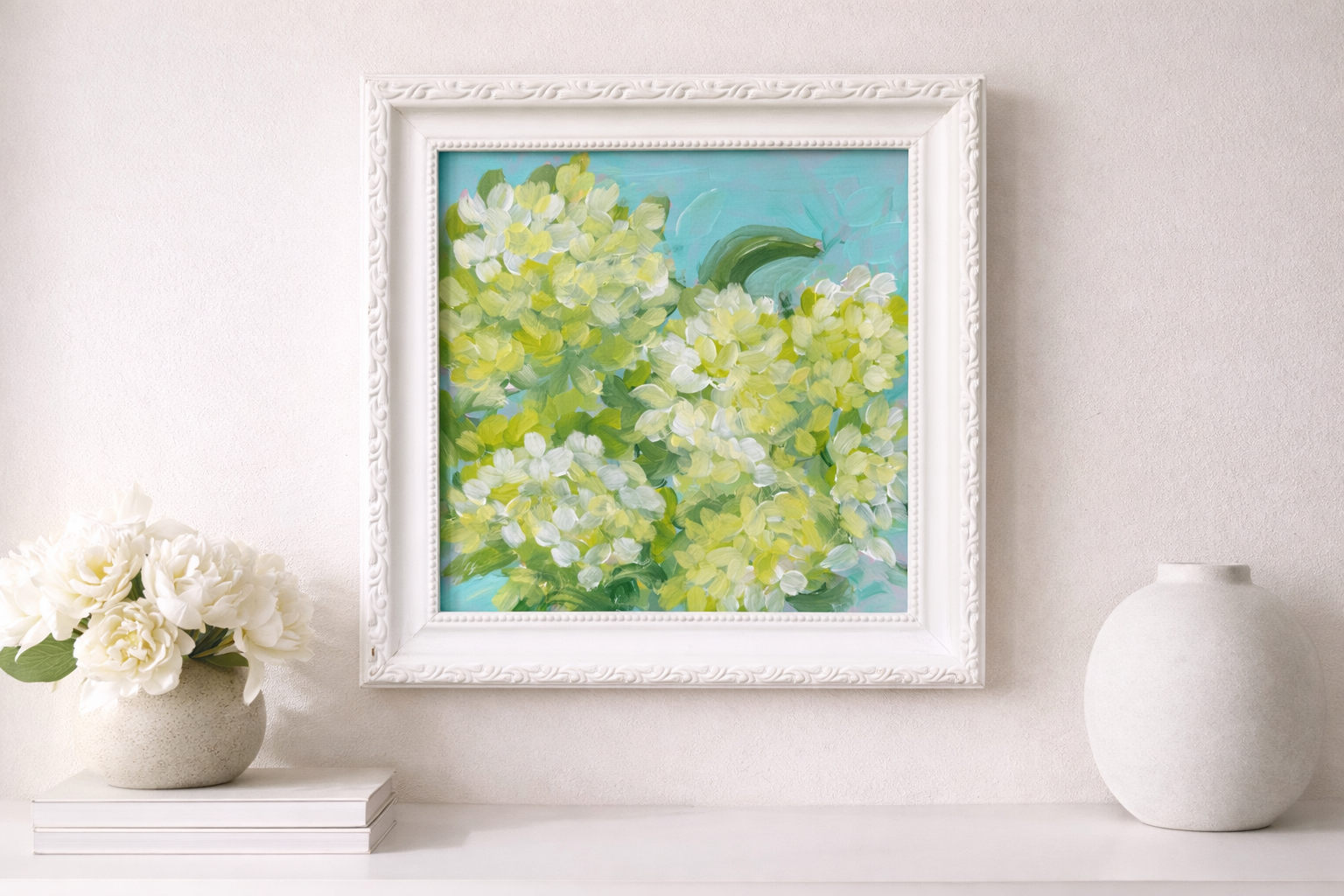 Shop original floral paintings featuring hydrangeas and botanical artwork. Discover framed and unframed pieces designed for coastal, cottage, and traditional home decor. Perfect for gallery walls or styled as cohesive sets.